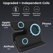 - 3-in-1 Wireless Charger Station: Effortlessly charge all your devices with this versatile 3-in-1 wireless charger, compatible with iPhone 15, Apple Watches, and AirPods. Perfect for gifting to moms, dads, teens, and friends this holiday season