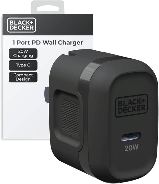 BLACK+DECKER 20W GaN USB-C Wall Charger – Compact PD Fast Charging Block for iPhone, iPad & Samsung