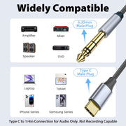 - Professional-Grade USB C to 1/4 Inch Audio Cable – Connect smartphones, tablets, laptops, or MacBook with Type-C port to amplifiers, speakers, headphones, mixers, and home theater systems