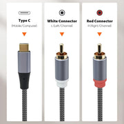 - Durable RCA to USB C Cable Build – Braided jacket and durable materials provide long-lasting strength, while dual-channel labeling (red/right, white/left) simplifies setup