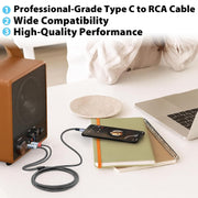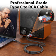 - Bi-Directional USB-C to RCA Adapter Design – Bi-directional signal transfer with plug-and-play use, featuring SR strain relief to protect wires and minimize wear