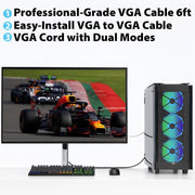 - Professional-Grade VGA Cable 6ft – High-quality video transmission supporting resolutions up to 1920x1200 and 1080P @ 60Hz for monitors, projectors, and displays