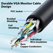 - Long-Lasting VGA Cables – Flexible PVC jacket and SR strain relief reduce wear, extending the life of your computer monitor cable