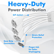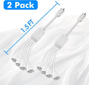 - 4 Outlet Power Splitter – Conveniently convert a single power outlet into four, ideal for expanding access in tight spaces or multiple device setups. Comes with two 1.5FT cords, perfect for extending power reach while keeping cords neatly organized