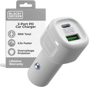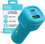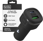 BLACK+DECKER 38W USB-C Car Charger – Dual Port PD/QC Fast Charging Adapter for iPhone, Samsung, Pixel, iPad & More