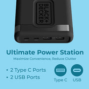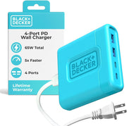 BLACK+DECKER 65W USB-C Fast Charger – 4-Port Charging Station with 2 USB-C & 2 USB-A for iPhone, iPad, Samsung, Pixel