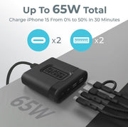 - Power Up Like a Pro: Charge up to 4 devices simultaneously with 65W of power. Perfect for your laptop, phone, tablet, and more—stay connected and powered throughout your busy day with the usb charging station for multiple devices apple