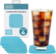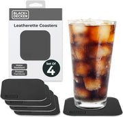 BLACK+DECKER Square Drink Coasters Set of 4 – Water-Resistant, Durable 4" Tabletop Protection