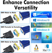 Cyberguys DB9 Gender Changer 3-Pack ā RS232 Serial Adapter Set (F/F, M/M, M/F) Slimline Connector for PC, Modem, Router, Switch, POS, Printer