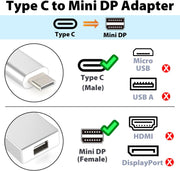 - 4K Ultra HD Resolution ā Enjoy crisp, lifelike detail with support for resolutions up to 4K@60Hz. Perfect for presentations, movies, or multi-screen usbc to mini DisplayPort work setups
