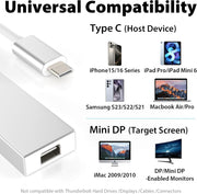 - Plug & Play Simplicity ā No drivers or software needed. Just connect usb-c to mini DisplayPort adapter and stream video and audio instantly without hassle