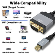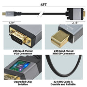 - Plug-and-Play Mini DisplayPort Cable – Unidirectional conversion from Mini DP to VGA only, with easy setup and no driver or software installation required