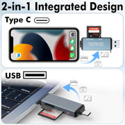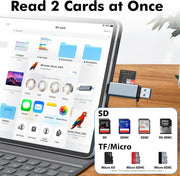 - 2-in-1 Dual Interface Design β Features both USB-A and USB-C connectors, allowing seamless use across sd card reader for iPhone 15 and newer, laptops, desktops, tablets, and smartphones with Type-C or traditional USB ports