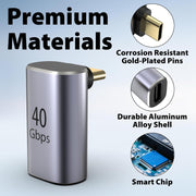 Cyberguys USB-C Right Angle Adapter 2-Pack – 240W PD, 40Gbps USB4 Extender, 8K Video