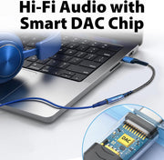 - Hi-Fi Audio with Smart DAC – Equipped with a high-performance DAC chip, this usb c to aux adapter delivers superior 24-bit/96kHz audio for enhanced clarity, detail, and fidelity over standard 16-bit/48kHz models