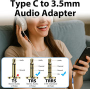 - Universal 3.5mm to Type C Compatibility – Easily connect your USB-C devices to traditional headphones, car stereos, home audio systems, or speakers. Supports both listening and microphone functionality