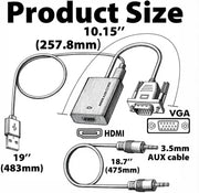 - Integrated Audio Support – Includes 3.5mm AUX cable to transfer audio and Micro USB cable for reliable power to the built-in chipset—delivering both video and sound with stable VGA to HDMI converter performance