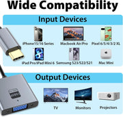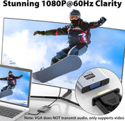 - HD Visuals up to 1080P@60Hz β Delivers sharp, high-definition video output for crystal-clear presentations, extended displays, and streaming (Note: VGA is video only, no audio)