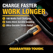 DEWALT Heavy Duty 100W USB-C Cable – PD Fast Charging Type-C to Type-C Jobsite Cord