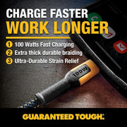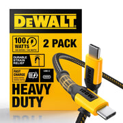 DEWALT Heavy Duty USB-C to USB-C Cables (2-Pack, 4ft) ā 100W Fast Charging, Braided