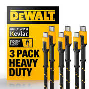 DEWALT Heavy Duty USB-C Cable 3-Pack (6ft) – 60W PD Fast Charging Type-C to Type-C for iPhone, MacBook, iPad & Samsung