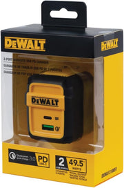 DEWALT Heavy Duty 49.5W Dual Port USB & USB-C Wall Charger – Compact Foldable Adapter