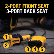 DEWALT 5-Port PD Car Charger – Front & Back Seat USB Fast Charging Hub