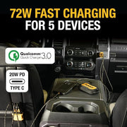 - 3-Port Back Car Phone Charger — Features 3 USB-A charging ports in the back seat to provide charging for all your jobsite needs
