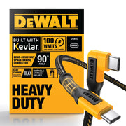 DEWALT 90° Angled 100W USB-C Cable – Heavy Duty PD Fast Charging Cord