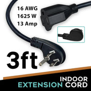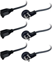 Flat Plug Extension Cord 3FT 3-Pack – Low Profile 45° Angled Power Adapter, UL Listed 16 AWG