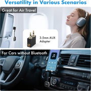 - Travel-Friendly Wireless Freedom – Powered by advanced Bluetooth 5.3 technology, convert any 3.5mm audio jack into a compact wireless Bluetooth transmitter for tv, in-flight entertainment, gym equipment, gaming devices, car stereos, and more