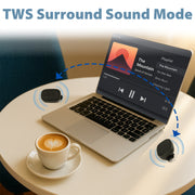 - TWS Surround Sound Mode — Pair two wearable speakers wirelessly for true stereo audio to enhance music, movies, or calls. With BT 5.3 connectivity for fast pairing, stable connections, and low latency audio across phones, tablets, and laptops