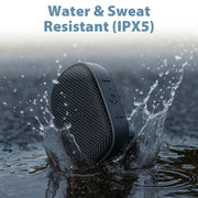 - Water & Sweat Resistant (IPX5) — Designed for outdoor durability, this mini wireless speaker with clip resists splashes, sweat, and light rain—ideal for workouts, hikes, or travel