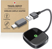 TRAVEL DEPOT Wireless CarPlay Adapter – Plug & Play Bluetooth Dongle Converts Wired to Wireless Apple CarPlay, Fast Auto Connect, Works w/800+ Car Models
