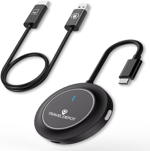 View full detailsTRAVEL DEPOT Wireless CarPlay Adapter โ Plug & Play Bluetooth Dongle Converts Wired to Wireless Apple CarPlay, Fast Auto Connect, Works w/800+ Car Models