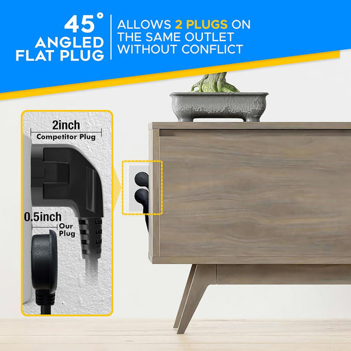 View full detailsFlat Plug Extension Cord โ Low Profile 45ยฐ Angled Power Adapter, UL Listed 16 AWG