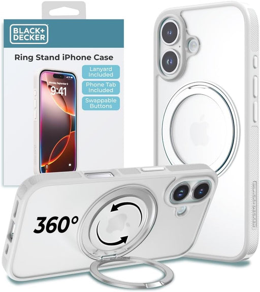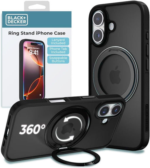 View full detailsBLACK+DECKER iPhone 16 Case โ 360ยฐ Rotating Ring Stand, MagSafe & Lanyard