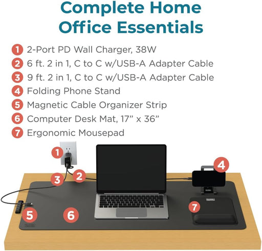Black+DeckerComplete Home Office Solution: Includes all essentials for a cohesive and stylish workspaceโvegan leather desk mat, charger, cables, mouse pad, p...