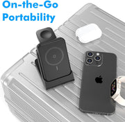 The TRAVEL DEPOT 4-in-1 Charging Station is the ultimate charging solution for Apple users, designed to keep your devices powered up effortlessly at home, in the office, or on the go. This portable MagSafe-compatible charger lets you charge your iPhone 16/15/14/13, Apple Watch, and AirPods simultaneously without clutter.