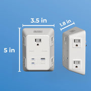 • 5-Outlet Surge Protector Power Strip: Transform a single outlet into 5 surge-protected AC outlets with this sleek, modern power extender. Perfect for powering a range of devices from iPhones and tablets to laptops and projectors