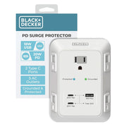BLACK+DECKER 5-Outlet Surge Protector Wall Charger – 2 USB-C PD & USB-A Fast Charging Ports