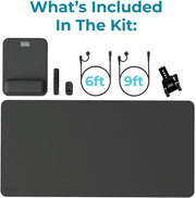 - Complete Home Office Solution: Includes all essentials for a cohesive and stylish workspace—vegan leather desk mat, charger, cables, mouse pad, phone stand, and cable organizer