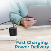 - Efficient Charging: 2-Port 38W PD Wall Charger paired with two 2-in-1 USB-C to USB-C/USB-A cables (6ft & 9ft) for versatile charging to complete your desk accessories set