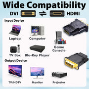 - Bi-Directional HDMI-DVI Adapter: Connects DVI-equipped computers to HDMI monitors/TVs or HDMI devices to DVI monitors — flexible setup in either direction (HDMI cable required)