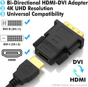 Cyberguys 2-Pack DVI to HDMI Adapter – Bi-Directional DVI-D Male to HDMI Female, 4K UHD