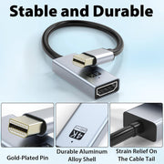 - Mini DP to HDMI Adapter – Effortlessly connect laptops and desktops with Mini DisplayPort or Thunderbolt 1/2 to HDMI-equipped TVs, monitors, or projectors. Note: HDMI cable not included.