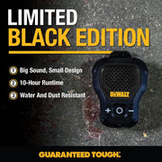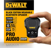 DEWALT Wearable Bluetooth Speaker – Onyx Edition Clip-On Wireless Jobsite Speaker w/Mic, Water-Repellent, Compact & Portable