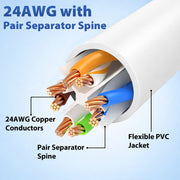 Constructed with 24AWG conductors, a pair-separator spine, gold-plated contacts, and strain-relief boots, it provides long-lasting durability and clean signal transmission. This cable is Fluke tested and UL certified, making it a trusted solution for structured cabling, patch panels, PoE devices, or direct modem-to-router connections.