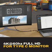 - 90° Angled Design — Prevents cable bending and clutter, perfect USB C male to USB C female cable for tight spaces, desks, and mobile setups