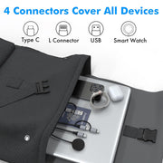 - 4-in-1 Universal Charging Solution – Features four different connectors to charge multiple devices simultaneously, including Apple Watch, AirPods, iPhone, Android, tablets, and laptops, eliminating the need for multiple cables